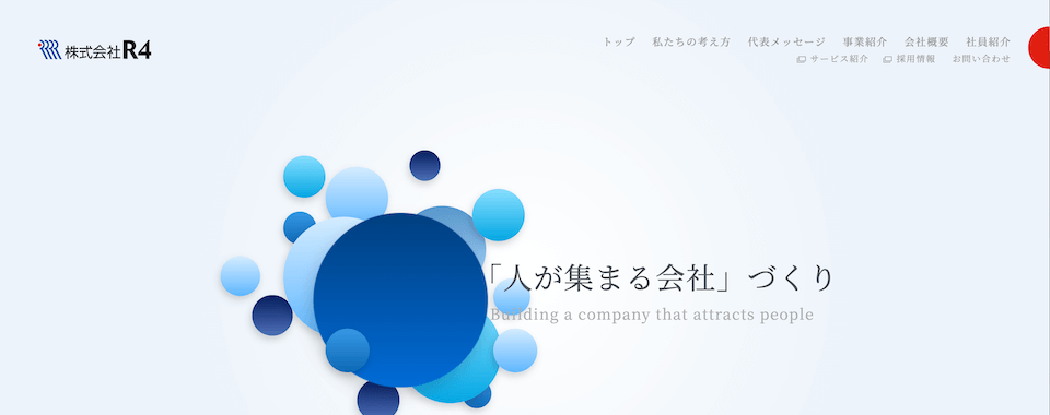 R4は、名古屋で設立以来、人材採用を中心に企業の課題解決に取り組んできた採用支援会社です。企業ブランディング・インナーブランディング・採用ブランディングの3領域を軸にサービスを展開しています。
